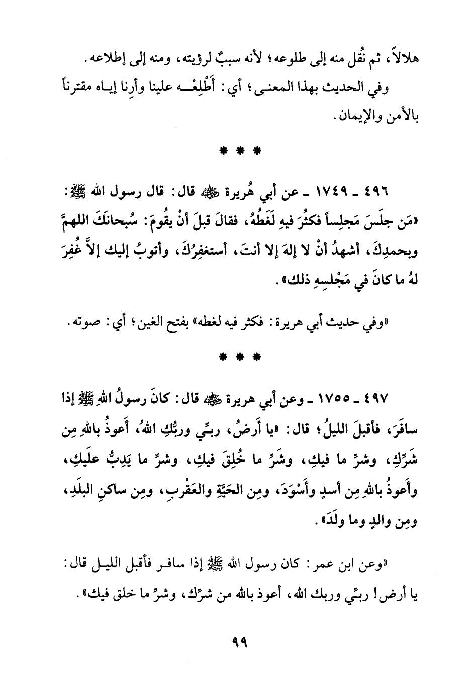 496 - 1749 - عن أبي هريرة رضي الله عنه قال: قال رسول الله صلى الله عليه وسلم: " من جلس مجلسا فكثر فيه لغطه, فقال: قبل أن يقوم: سبحانك اللهم وبحمدك أشهد أن لا إله إلا أنت, أستغفرك, وأتوب إليك إلا غفر له ما كان في مجلسه ذلك ".