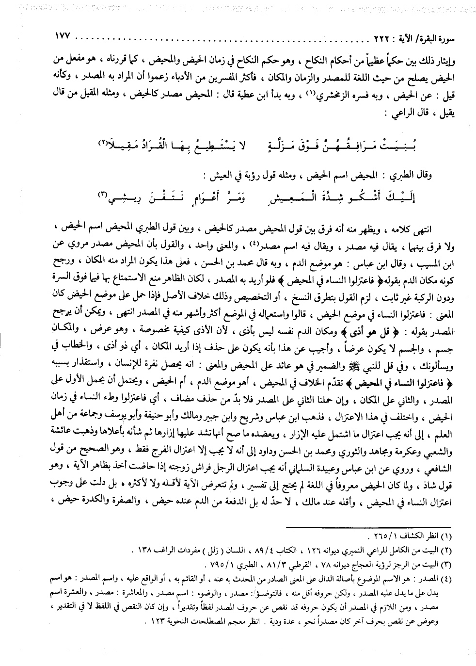 ويمكن أن يرجح المصدر بقوله : ) قُلْ هُوَ أَذًى ). ومكان الدم نفسه ليس بأذىً لأن الأذى كيفية مخصوصة وهو عرض ، والمكان جسم ، والجسم لا يكون عرضاً . وأجيب عن هذا بأنه يكون على حذف إذا أريد المكان ، أي : ذو أذى .