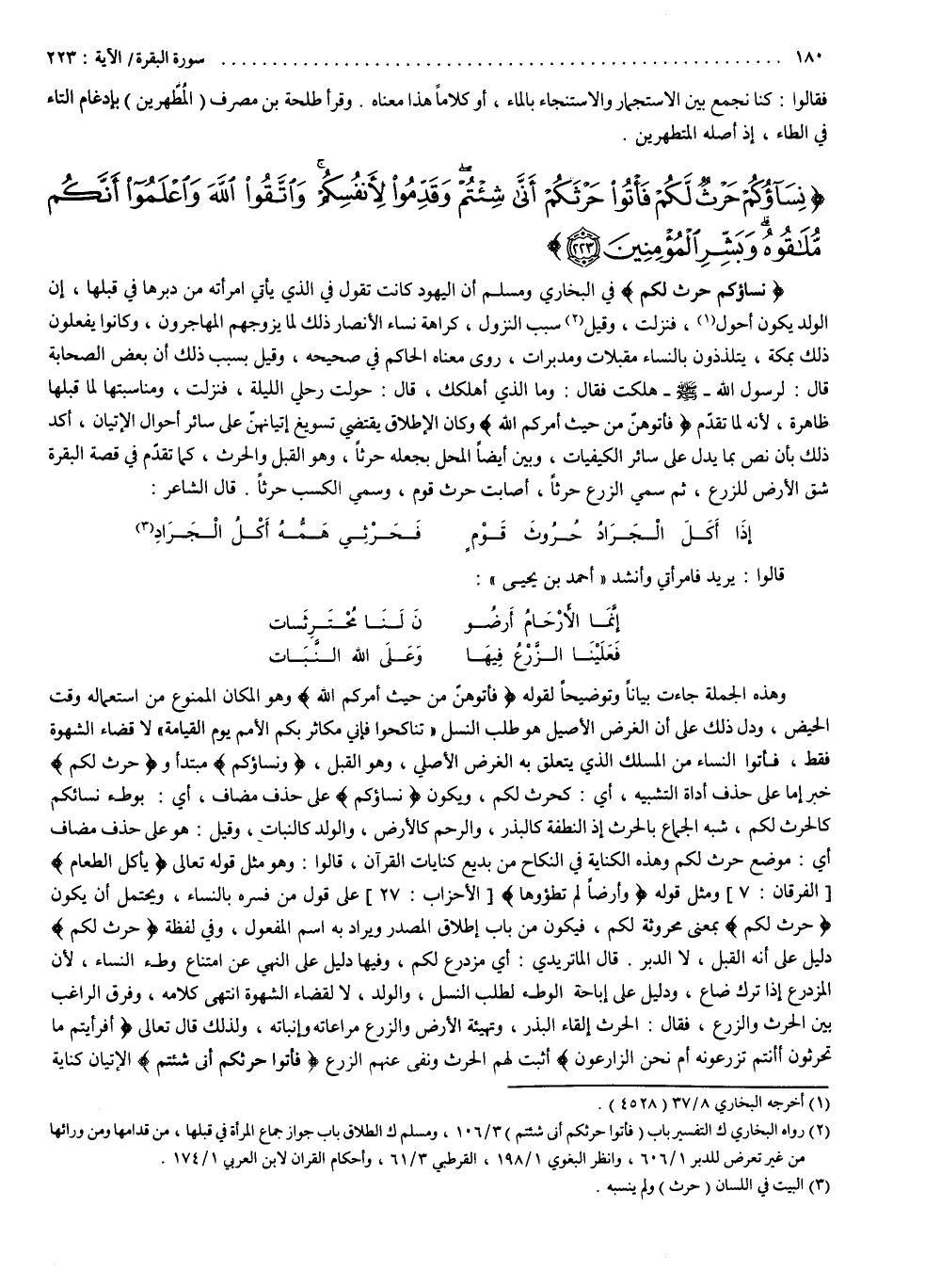 البقرة : ( 223 ) نساؤكم حرث لكم . . . . .
