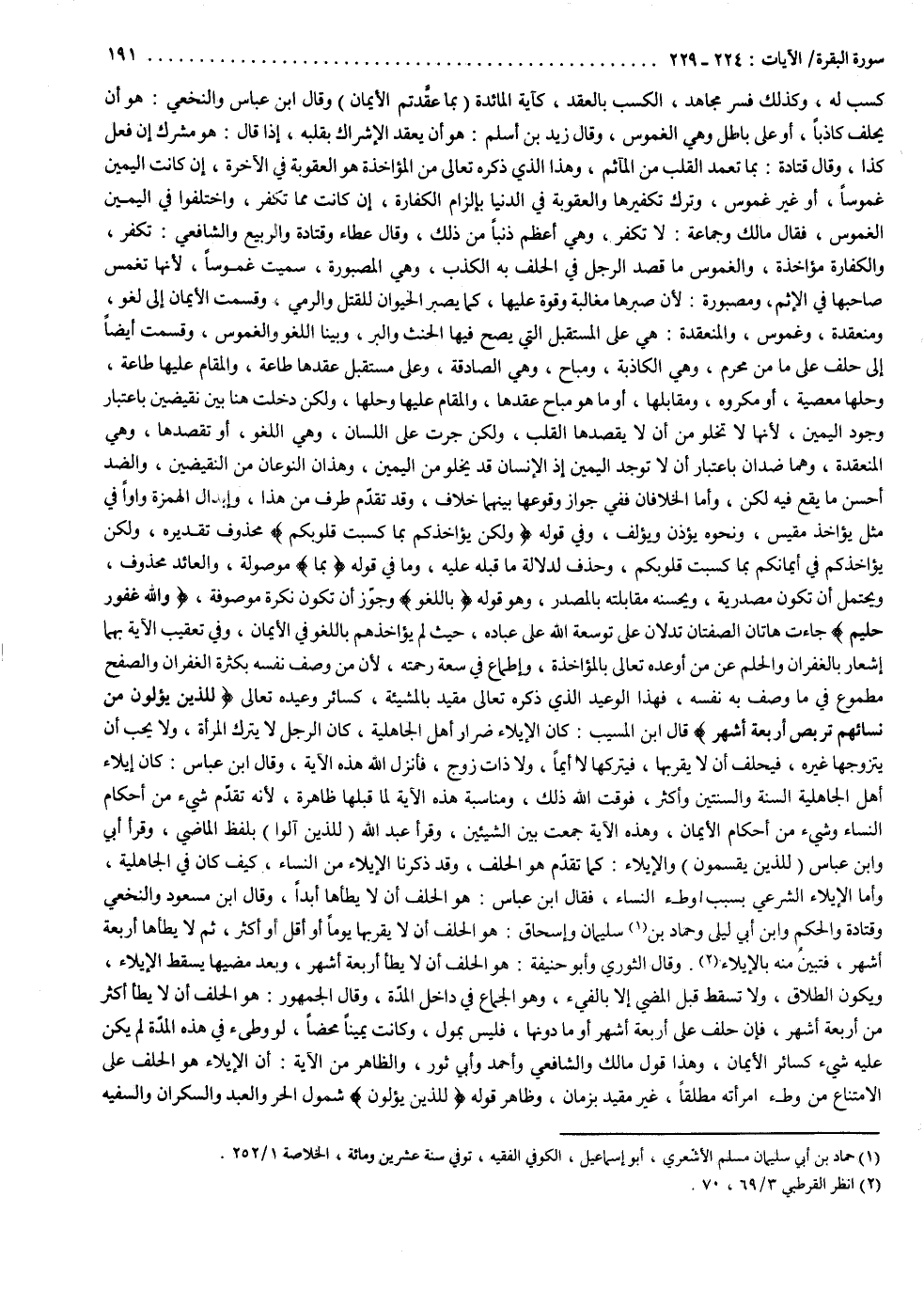 ( لّلَّذِينَ يُؤْلُونَ مِن نّسَائِهِمْ تَرَبُّصُ أَرْبَعَةِ أَشْهُرٍ ( قال ابن المسيب : كان الإيلاء ضرار أهل الجاهلية ، كان الرجل لا يترك المرأة ، ولا يحب أن يتزوجها غيره فيحلف أن لا يقربها ، فيتركها لا أيماً ، ولا ذات زوج ، فأنزل الله هذه الآية .
