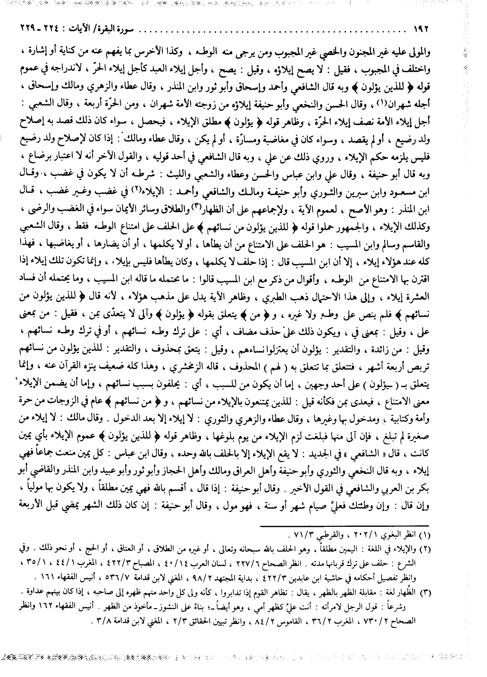 وظاهر الآية يدل على مذهب هؤلاء ، لأنه قال : ) لّلَّذِينَ يُؤْلُونَ مِن نّسَائِهِمْ ( فلم ينص على وطء ولا غيره .