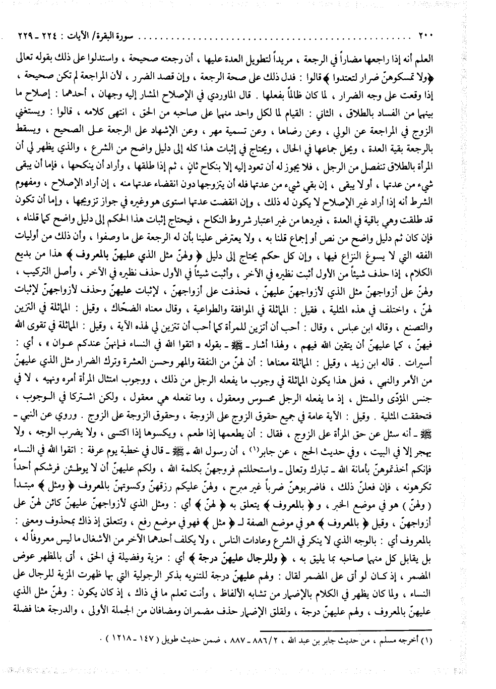 ( وَلَهُنَّ مِثْلُ الَّذِى عَلَيْهِنَّ بِالْمَعْرُوفِ ( هذا من بديع الكلام ، إذ حذف شيئاً من الأول أثبت نظيره في الآخر ، وأثبت شيئاً في الأول حذف نظيره في الآخر ، وأصل التركيب ولهنّ على أزواجهنّ مثل الذي لأزواجهنّ عليهنّ ، فحذفت على أزواجهنّ لإثبات : عليهنّ ، وحذف لأزواجهنّ لإثبات لهنّ .
