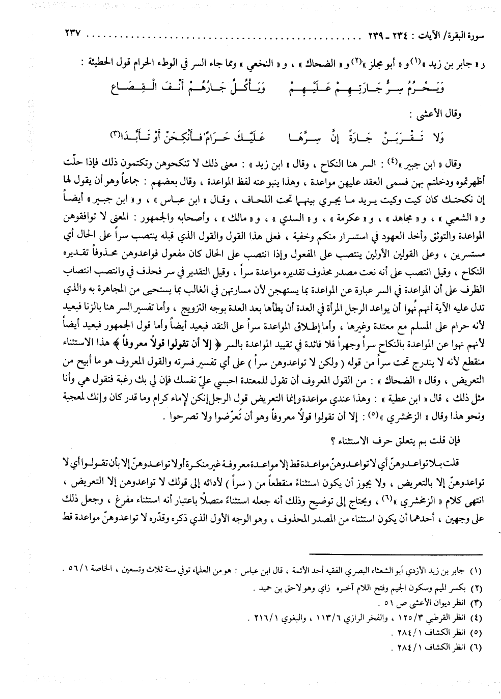 وجابر بن زيد ، وأبو مجلز ، والضحاك ، والنخعي . ومما جاء : السر ، في الوطء الحرام ، قوله الحطيئة : ويحرم سر جارتهم عليهم