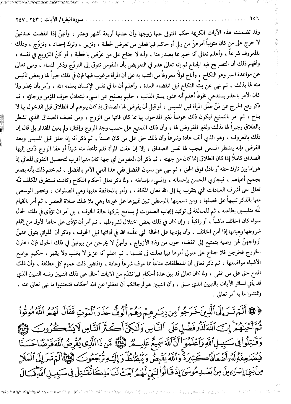 2 ( ) أَلَمْ تَرَ إِلَى الَّذِينَ خَرَجُواْ مِن دِيَارِهِمْ وَهُمْ أُلُوفٌ حَذَرَ الْمَوْتِ فَقَالَ لَهُمُ اللَّهُ مُوتُواْ ثُمَّ أَحْيَاهُمْ إِنَّ اللَّهَ لَذُو فَضْلٍ عَلَى النَّاسِ وَلَاكِنَّ أَكْثَرَ النَّاسِ لاَ يَشْكُرُونَ وَقَاتِلُواْ فِي سَبِيلِ اللَّهِ وَاعْلَمُواْ أَنَّ اللَّهَ سَمِيعٌ عَلِيمٌ مَّن ذَا الَّذِى يُقْرِضُ اللَّهَ قَرْضًا حَسَنًا فَيُضَاعِفَهُ لَهُ أَضْعَافًا كَثِيرَةً وَاللَّهُ يَقْبِضُ وَيَبْسُطُ وَإِلَيْهِ تُرْجَعُونَ أَلَمْ تَرَ إِلَى الْمَلإِ مِن بَنِىإِسْرءِيلَ مِن بَعْدِ مُوسَى إِذْ قَالُواْ لِنَبِىٍّ لَّهُمُ ابْعَثْ لَنَا مَلِكًا نُّقَاتِلْ فِى سَبِيلِ اللَّهِ قَال