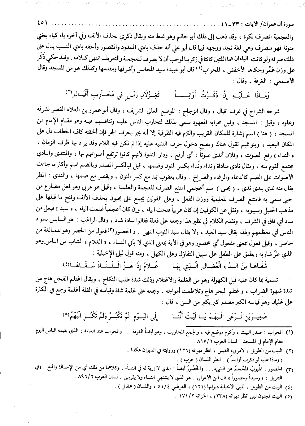 شرحه الشراح في غرف أقيال وقال الزجاج : الموضع العالي الشريف وقال أبو عمرو بن العلاء : القصر ، لشرفه وعلوه وقيل : المسجد وقيل : محرابه المعهود سمي بذلك لتحارب الناس عليه وتنافسهم فيه ، وهو مقام الإمام من المسجد .