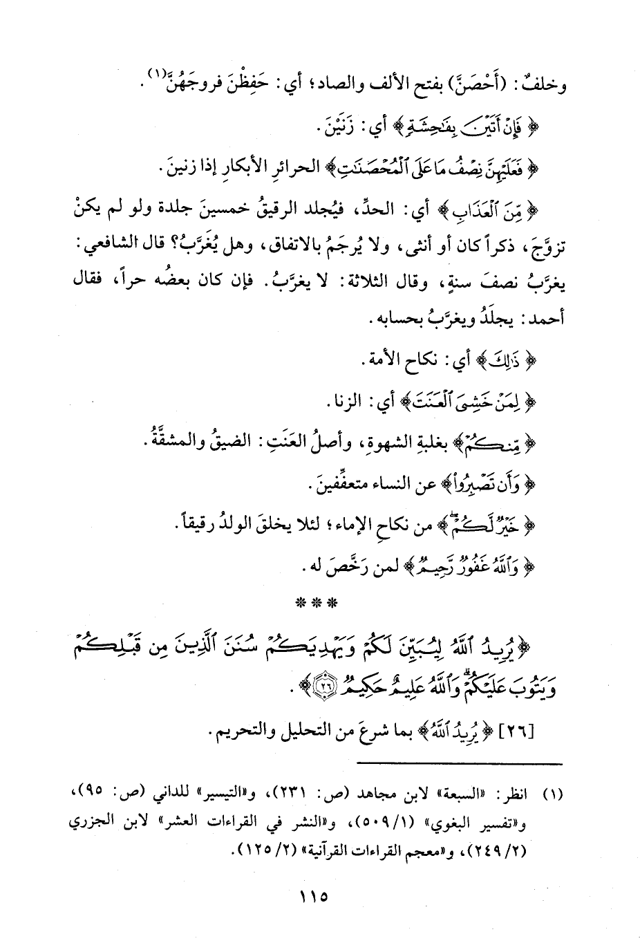 {يُرِيدُ اللَّهُ لِيُبَيِّنَ لَكُمْ وَيَهْدِيَكُمْ سُنَنَ الَّذِينَ مِنْ قَبْلِكُمْ وَيَتُوبَ عَلَيْكُمْ وَاللَّهُ عَلِيمٌ حَكِيمٌ (26)}.