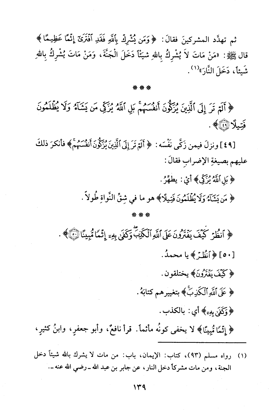 (¬1) رواه مسلم (93)، كتاب: الإيمان، باب: من مات لا يشرك بالله شيئًا دخل الجنة، ومن مات مشركًا دخل النار، عن جابر بن عبد الله -رضي الله عنه-.