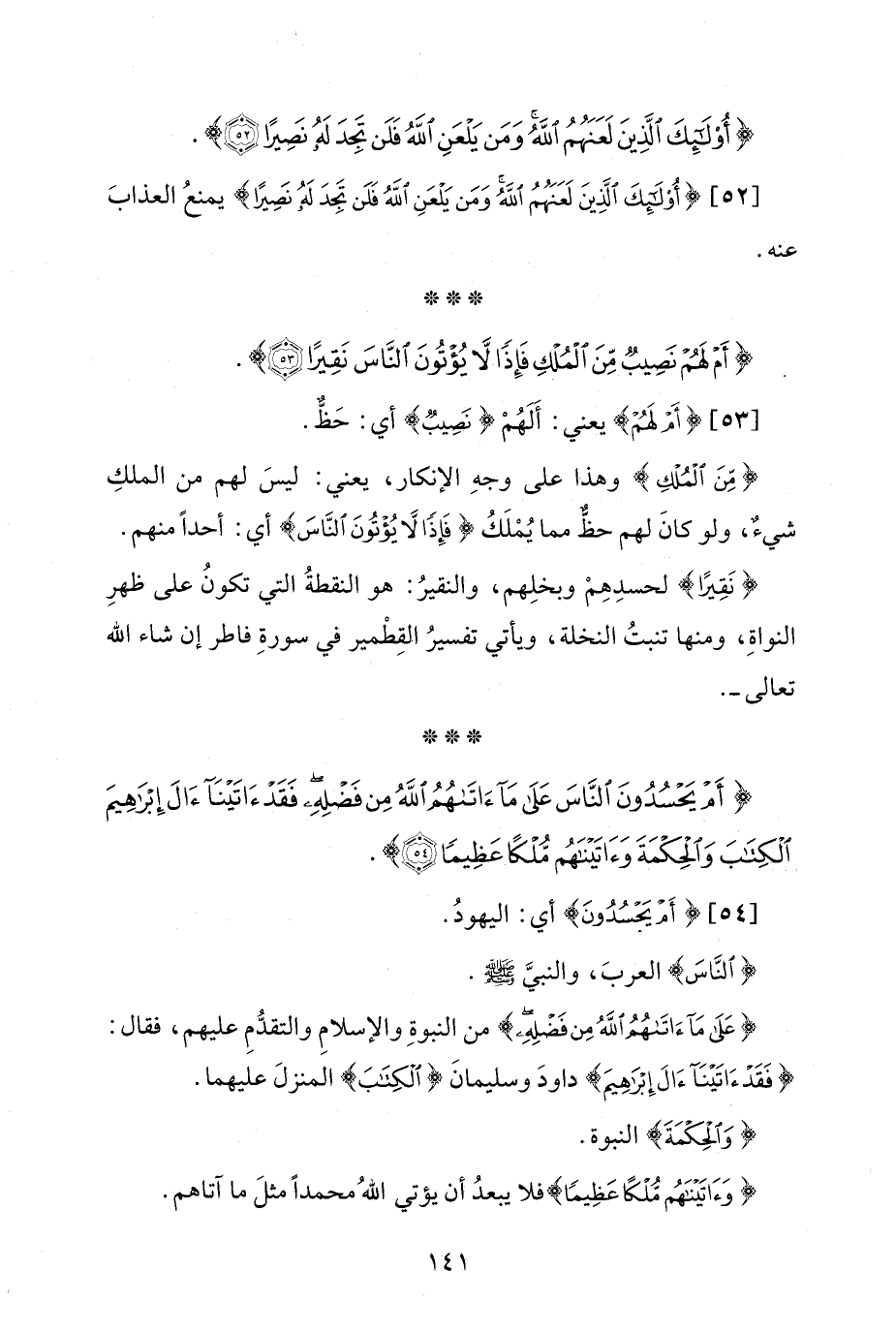 {أَمْ يَحْسُدُونَ النَّاسَ عَلَى مَا آتَاهُمُ اللَّهُ مِنْ فَضْلِهِ فَقَدْ آتَيْنَا آلَ إِبْرَاهِيمَ الْكِتَابَ وَالْحِكْمَةَ وَآتَيْنَاهُمْ مُلْكًا عَظِيمًا (54)}.