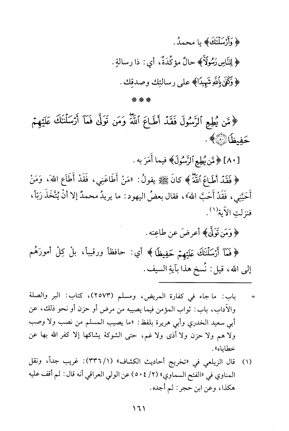 {مَنْ يُطِعِ الرَّسُولَ فَقَدْ أَطَاعَ اللَّهَ وَمَنْ تَوَلَّى فَمَا أَرْسَلْنَاكَ عَلَيْهِمْ حَفِيظًا (80)}.