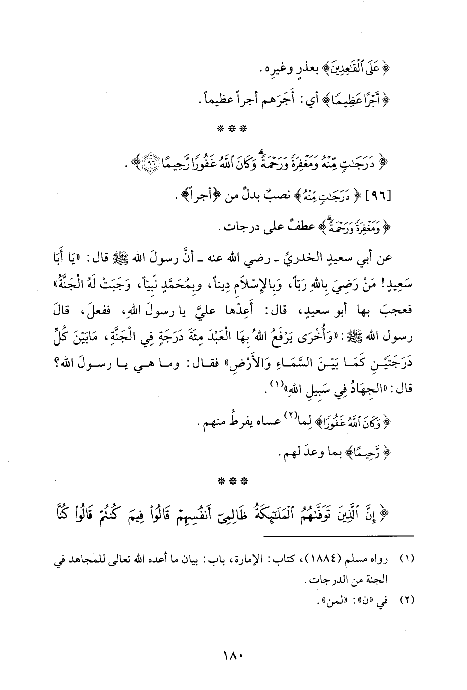 (¬1) رواه مسلم (1884)، كتاب: الإمارة، باب: بيان ما أعده الله تعالى للمجاهد في الجنة من الدرجات.