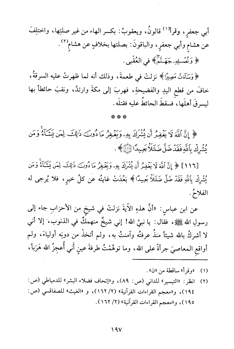 (¬2) انظر: "التيسير" للداني (ص: 89)، و"إتحاف فضلاء البشر" للدمياطي (ص: 194)، و"معجم القراءات القرآنية" (2/ 162)، و "الغيث" للصفاقسي (ص: 195)، و"معجم القراءات القرآنية" (2/ 162).