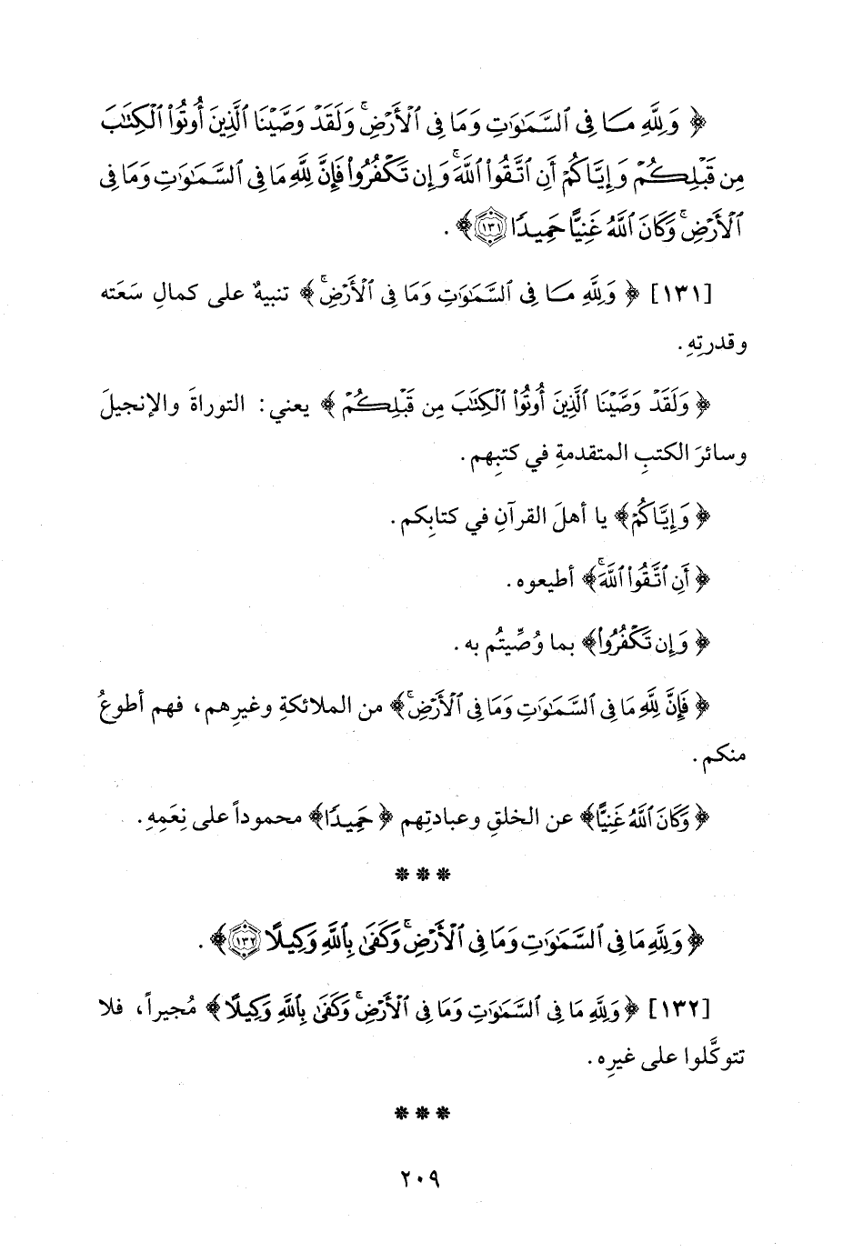{وَلِلَّهِ مَا فِي السَّمَاوَاتِ وَمَا فِي الْأَرْضِ وَلَقَدْ وَصَّيْنَا الَّذِينَ أُوتُوا الْكِتَابَ مِنْ قَبْلِكُمْ وَإِيَّاكُمْ أَنِ اتَّقُوا اللَّهَ وَإِنْ تَكْفُرُوا فَإِنَّ لِلَّهِ مَا فِي السَّمَاوَاتِ وَمَا فِي الْأَرْضِ وَكَانَ اللَّهُ غَنِيًّا حَمِيدًا (131)}.