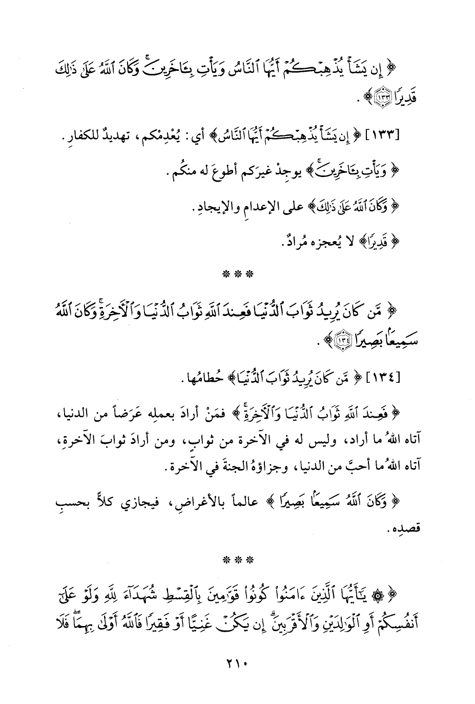 {إِنْ يَشَأْ يُذْهِبْكُمْ أَيُّهَا النَّاسُ وَيَأْتِ بِآخَرِينَ وَكَانَ اللَّهُ عَلَى ذَلِكَ قَدِيرًا (133)}.