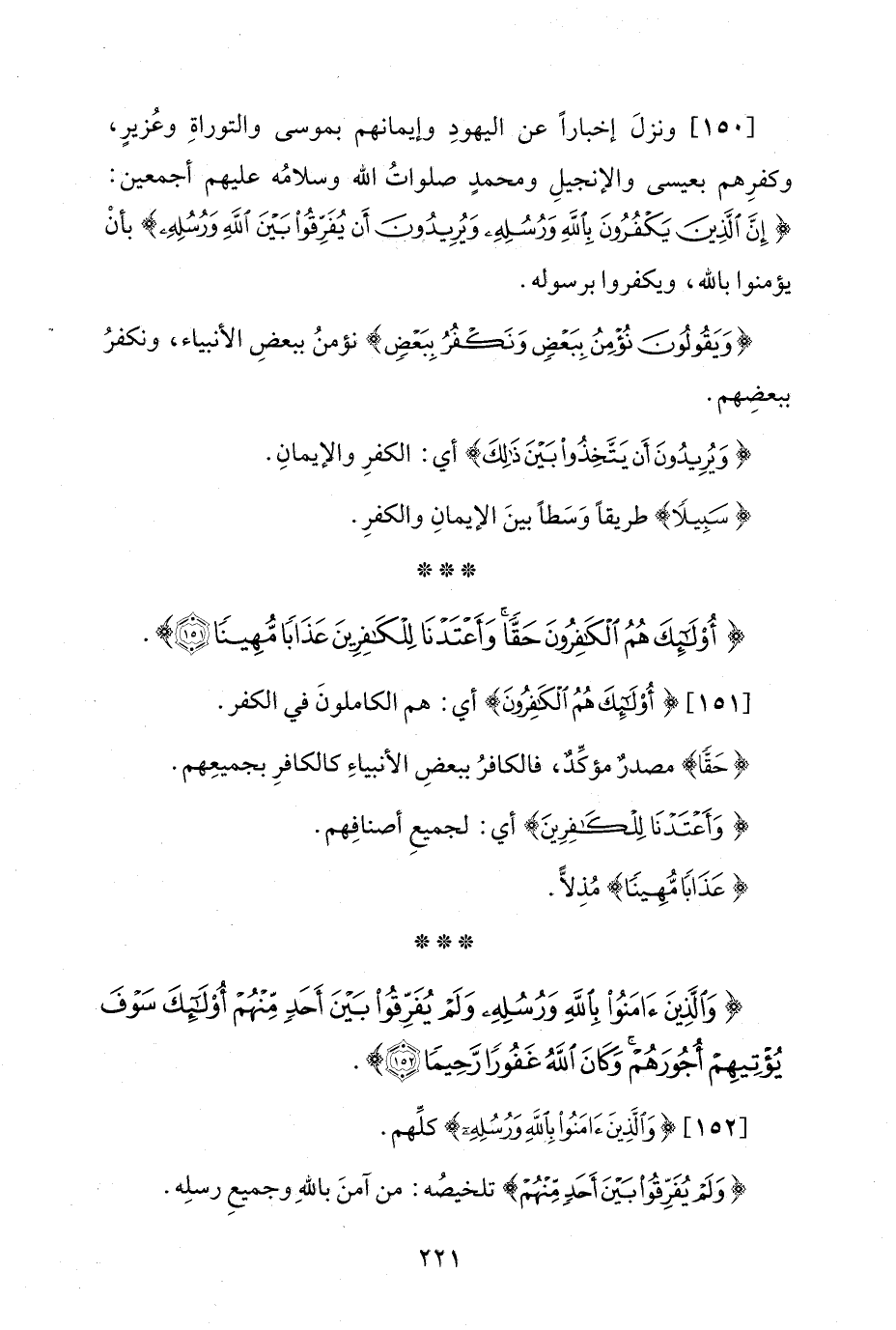 {وَالَّذِينَ آمَنُوا بِاللَّهِ وَرُسُلِهِ وَلَمْ يُفَرِّقُوا بَيْنَ أَحَدٍ مِنْهُمْ أُولَئِكَ سَوْفَ يُؤْتِيهِمْ أُجُورَهُمْ وَكَانَ اللَّهُ غَفُورًا رَحِيمًا (152)}.