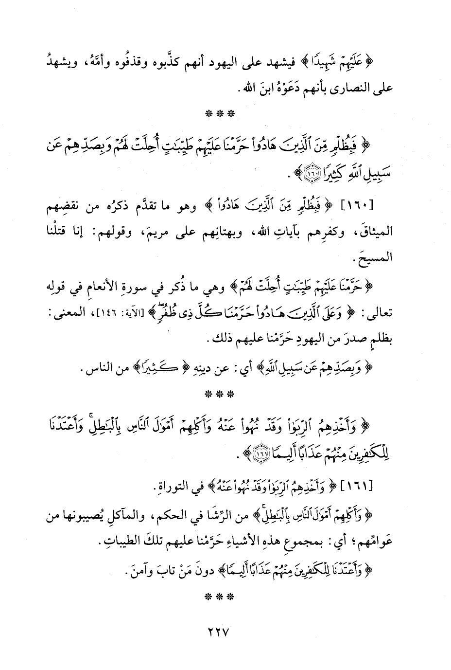 {فَبِظُلْمٍ مِنَ الَّذِينَ هَادُوا حَرَّمْنَا عَلَيْهِمْ طَيِّبَاتٍ أُحِلَّتْ لَهُمْ وَبِصَدِّهِمْ عَنْ سَبِيلِ اللَّهِ كَثِيرًا (160)}.