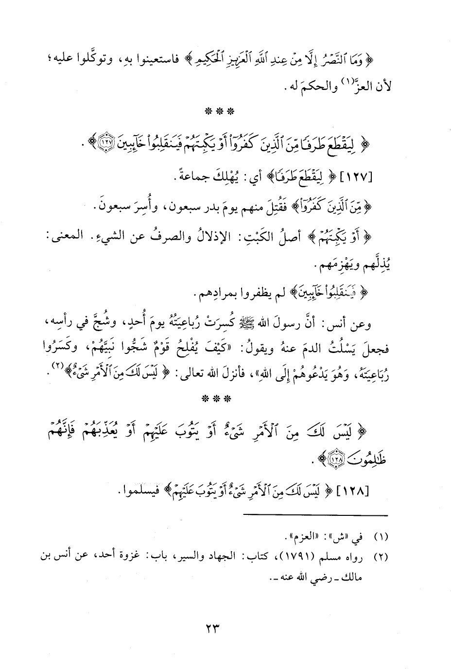 {لِيَقْطَعَ طَرَفًا مِنَ الَّذِينَ كَفَرُوا أَوْ يَكْبِتَهُمْ فَيَنْقَلِبُوا خَائِبِينَ (127)}.