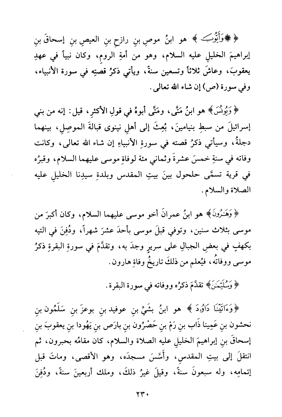 {وَأَيُّوبَ} هو ابنُ موصِ بنِ رازحِ بنِ العيصِ بنِ إسحاقَ بنِ إبراهيمَ الخليلِ عليه السلام، وهو من أمةِ الرومِ، وكان نبيًّا في عهدِ يعقوبَ، وعاشَ ثلاثًا وتسعين سنة، ويأتي ذكرُ قصتِه في سورة الأنبياء، وفي سورة (ص) إن شاء الله تعالى.