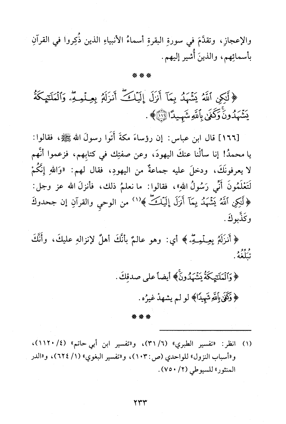 {لَكِنِ اللَّهُ يَشْهَدُ بِمَا أَنْزَلَ إِلَيْكَ أَنْزَلَهُ بِعِلْمِهِ وَالْمَلَائِكَةُ يَشْهَدُونَ وَكَفَى بِاللَّهِ شَهِيدًا (166)}.