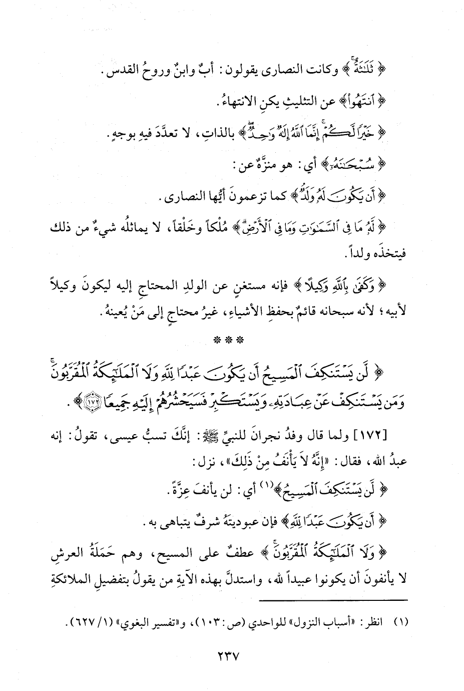 {لَنْ يَسْتَنْكِفَ الْمَسِيحُ أَنْ يَكُونَ عَبْدًا لِلَّهِ وَلَا الْمَلَائِكَةُ الْمُقَرَّبُونَ وَمَنْ يَسْتَنْكِفْ عَنْ عِبَادَتِهِ وَيَسْتَكْبِرْ فَسَيَحْشُرُهُمْ إِلَيْهِ جَمِيعًا (172)}.