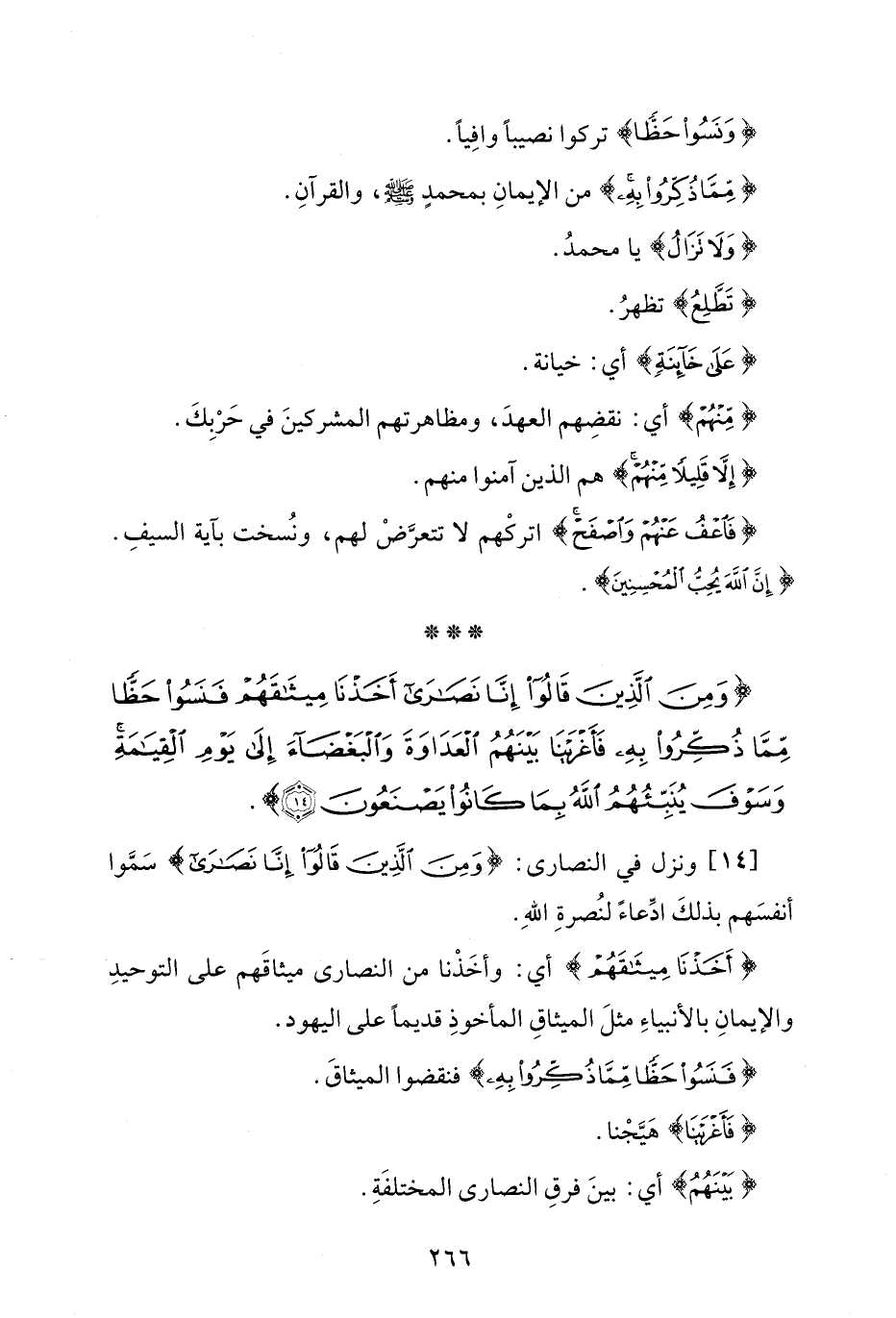 [14] ونزل في النصارى: {وَمِنَ الَّذِينَ قَالُوا إِنَّا نَصَارَى} سَمَّوا أنفسَهم بذلكَ ادِّعاءً لنُصرةِ اللهِ.