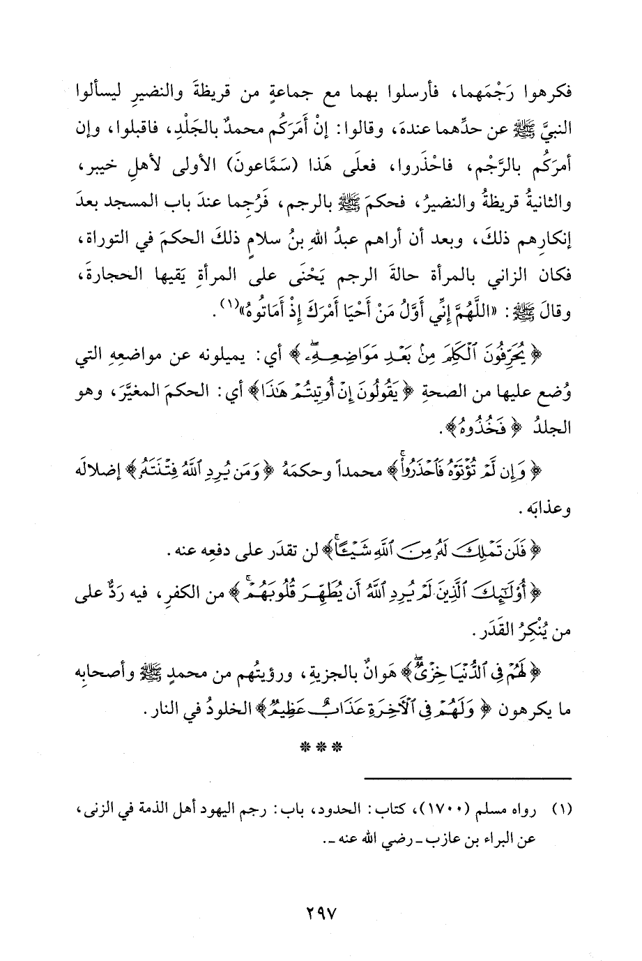 (¬1) رواه مسلم (1700)، كتاب: الحدود، باب: رجم اليهود أهل الذمة في الزنى، عن البراء بن عازب -رضي الله عنه-.