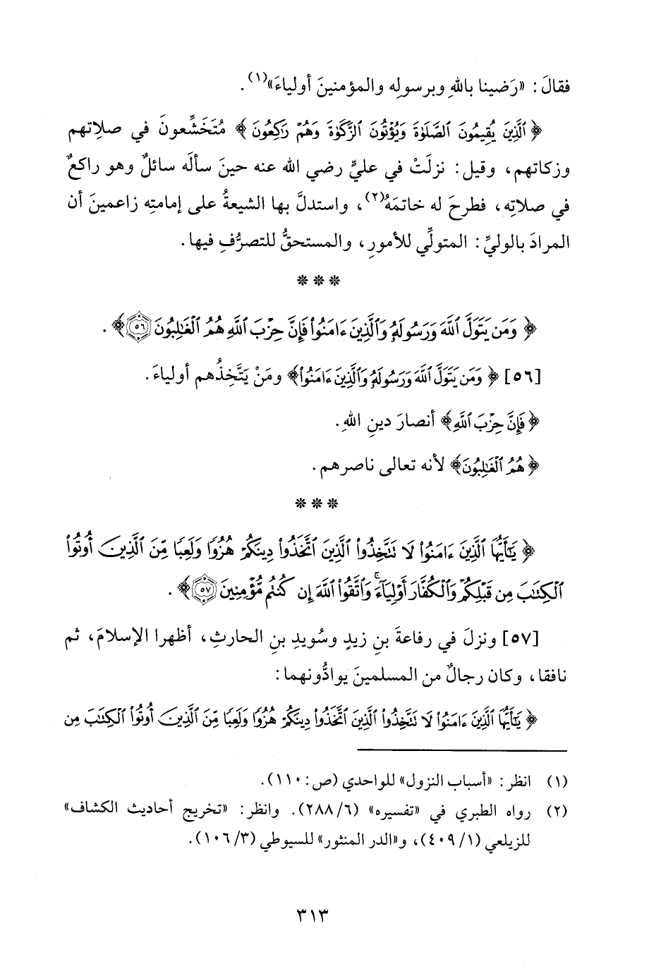 [56] {وَمَنْ يَتَوَلَّ اللَّهَ وَرَسُولَهُ وَالَّذِينَ آمَنُوا} ومَنْ يَتَّخِهذُهم أولياءَ.
