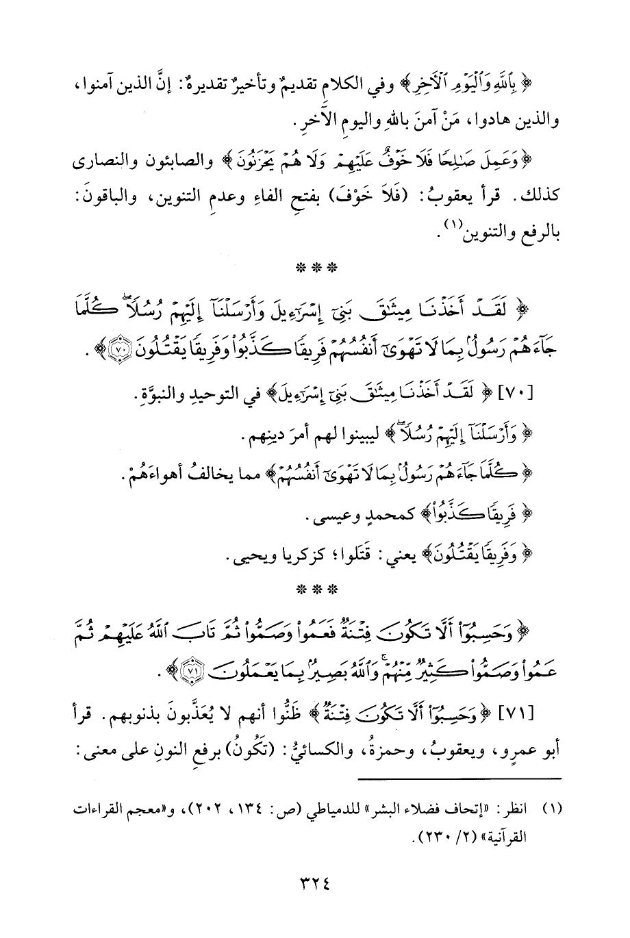 (¬1) انظر: "إتحاف فضلاء البشر" للدمياطي (ص: 134، 202)، و"معجم القراءات القرآنية" (2/ 230).