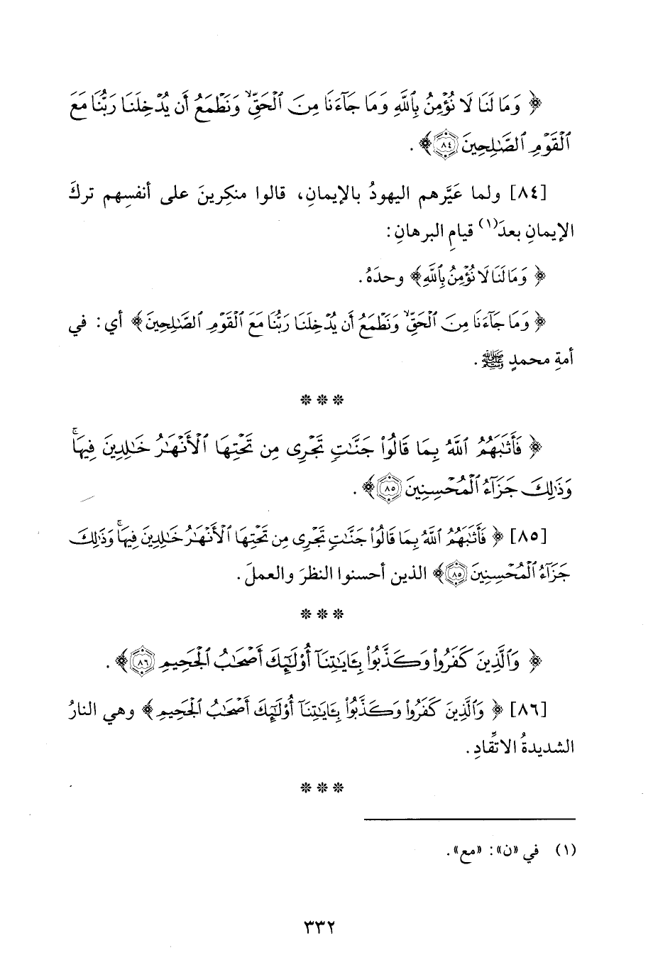 [85] {فَأَثَابَهُمُ اللَّهُ بِمَا قَالُوا جَنَّاتٍ تَجْرِي مِنْ تَحْتِهَا الْأَنْهَارُ خَالِدِينَ فِيهَا وَذَلِكَ جَزَاءُ الْمُحْسِنِينَ (85)} الذين أحسنوا النظرَ والعملَ.