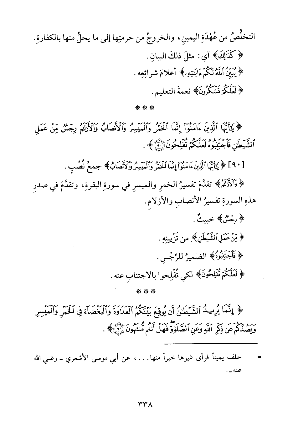 {يَاأَيُّهَا الَّذِينَ آمَنُوا إِنَّمَا الْخَمْرُ وَالْمَيْسِرُ وَالْأَنْصَابُ وَالْأَزْلَامُ رِجْسٌ مِنْ عَمَلِ الشَّيْطَانِ فَاجْتَنِبُوهُ لَعَلَّكُمْ تُفْلِحُونَ (90)}.