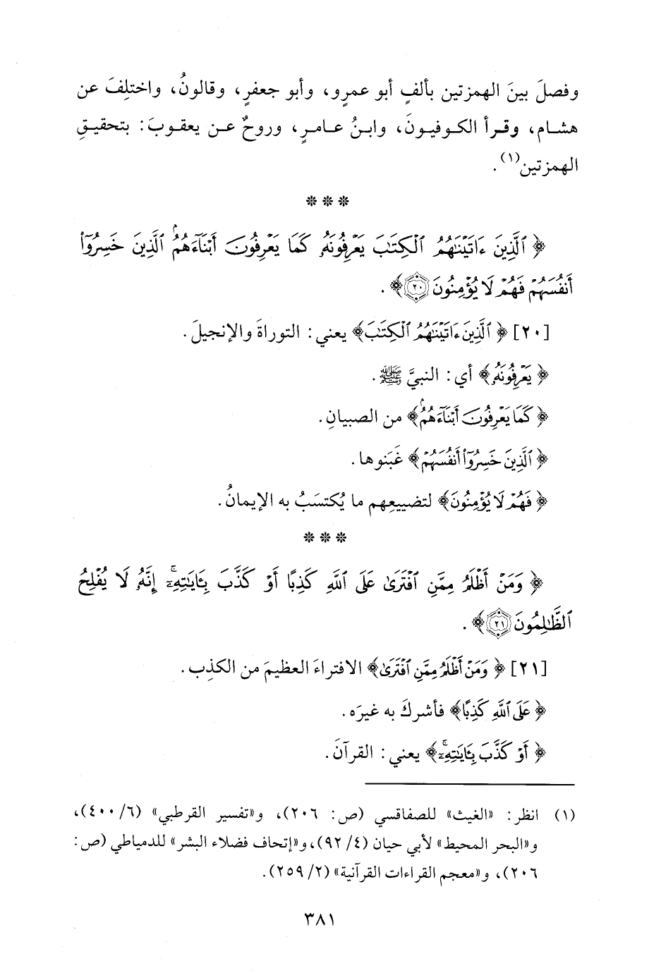 {الَّذِينَ آتَيْنَاهُمُ الْكِتَابَ يَعْرِفُونَهُ كَمَا يَعْرِفُونَ أَبْنَاءَهُمُ الَّذِينَ خَسِرُوا أَنْفُسَهُمْ فَهُمْ لَا يُؤْمِنُونَ (20)}.