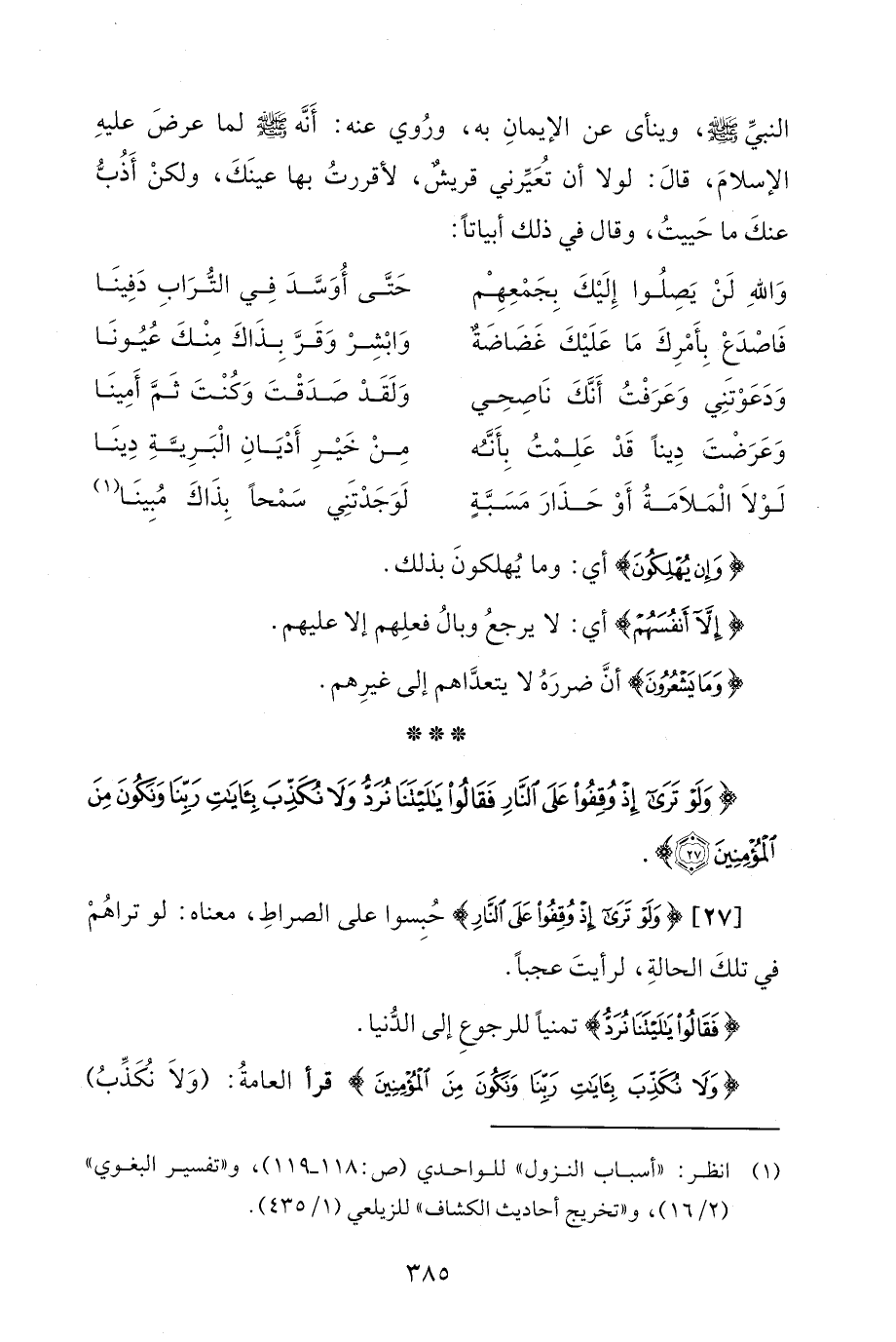 {وَلَوْ تَرَى إِذْ وُقِفُوا عَلَى النَّارِ فَقَالُوا يَالَيْتَنَا نُرَدُّ وَلَا نُكَذِّبَ بِآيَاتِ رَبِّنَا وَنَكُونَ مِنَ الْمُؤْمِنِينَ (27)}.
