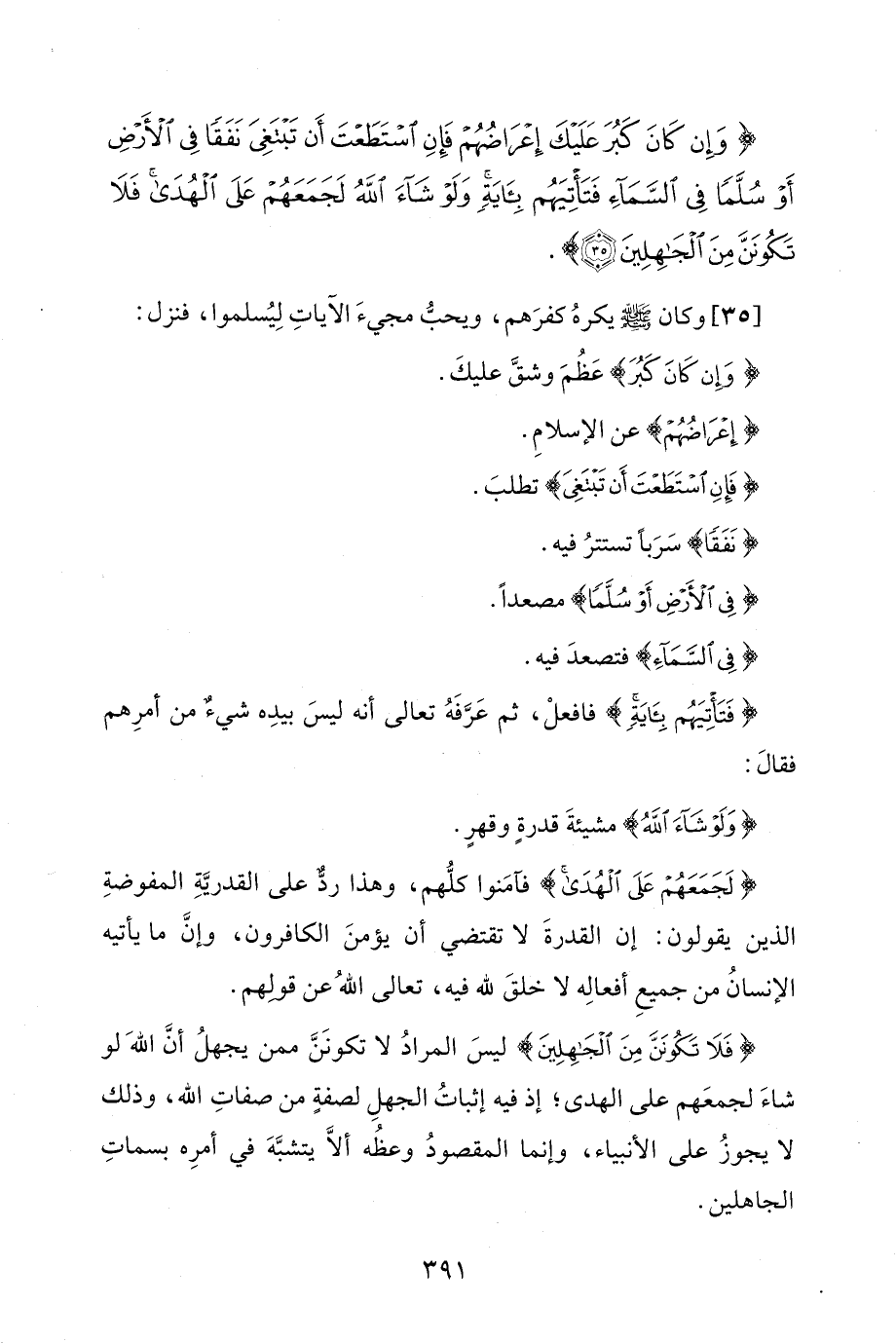 [35] وكان - صلى الله عليه وسلم - يكرهُ كفرَهم، ويحبُّ مجيءَ الآياتِ لِيُسلموا، فنزل: