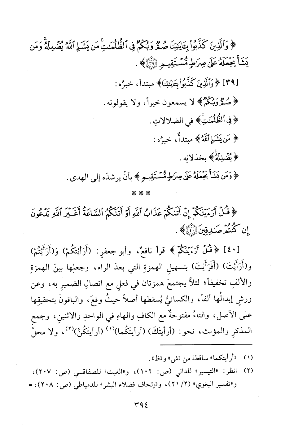 {وَالَّذِينَ كَذَّبُوا بِآيَاتِنَا صُمٌّ وَبُكْمٌ فِي الظُّلُمَاتِ مَنْ يَشَإِ اللَّهُ يُضْلِلْهُ وَمَنْ يَشَأْ يَجْعَلْهُ عَلَى صِرَاطٍ مُسْتَقِيمٍ (39)}.
