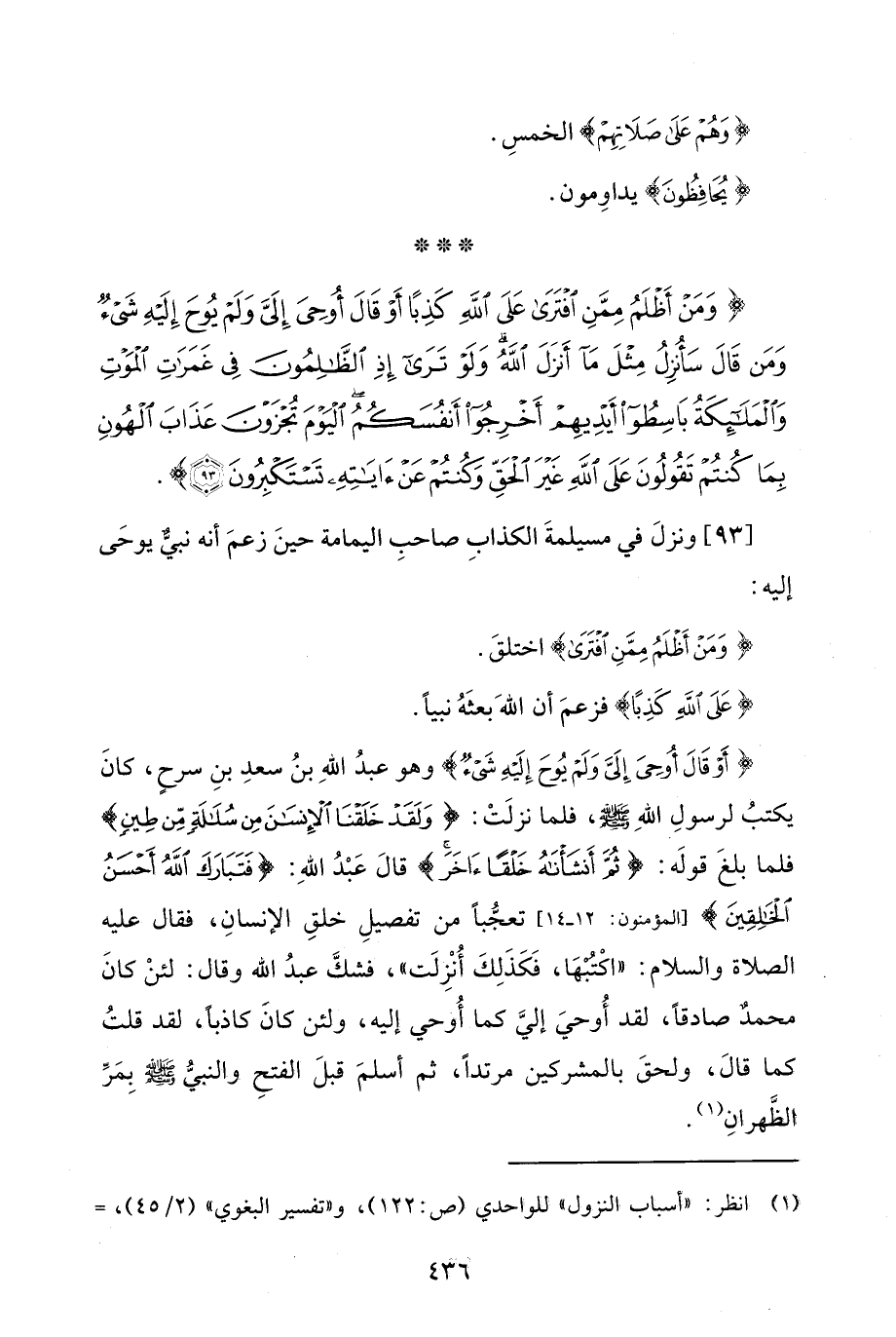 [93] ونزل في مسيلمة الكذاب صاحب اليمامة حين زعم أنه نبيٌّ يوحى إليه: