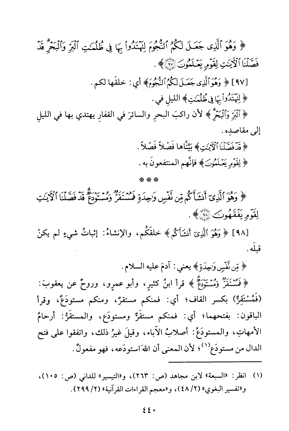 {وَهُوَ الَّذِي أَنْشَأَكُمْ مِنْ نَفْسٍ وَاحِدَةٍ فَمُسْتَقَرٌّ وَمُسْتَوْدَعٌ قَدْ فَصَّلْنَا الْآيَاتِ لِقَوْمٍ يَفْقَهُونَ (98)}.