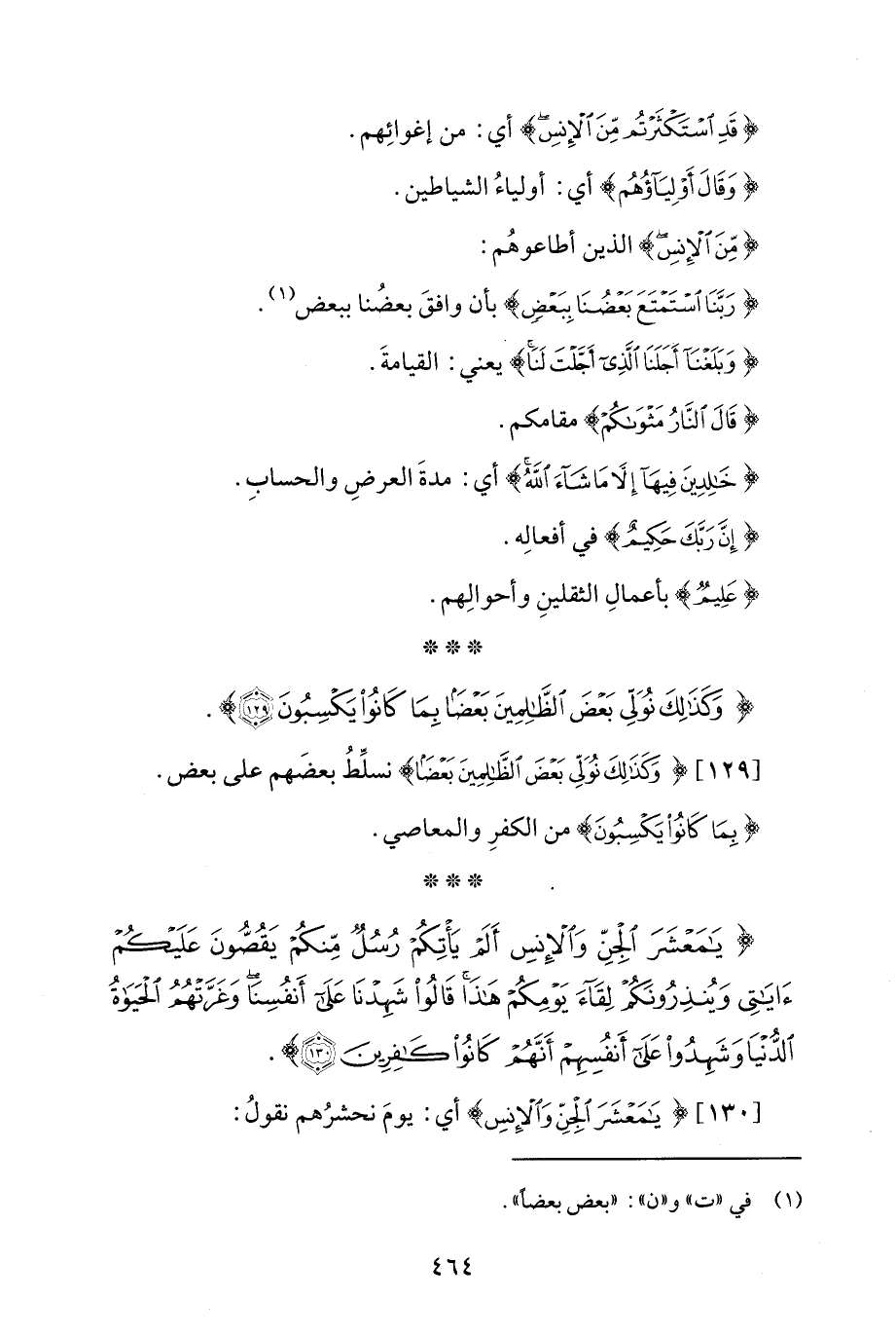 [129] {وَكَذَلِكَ نُوَلِّي بَعْضَ الظَّالِمِينَ بَعْضًا} نسلِّطُ بعضَهم على بعض.