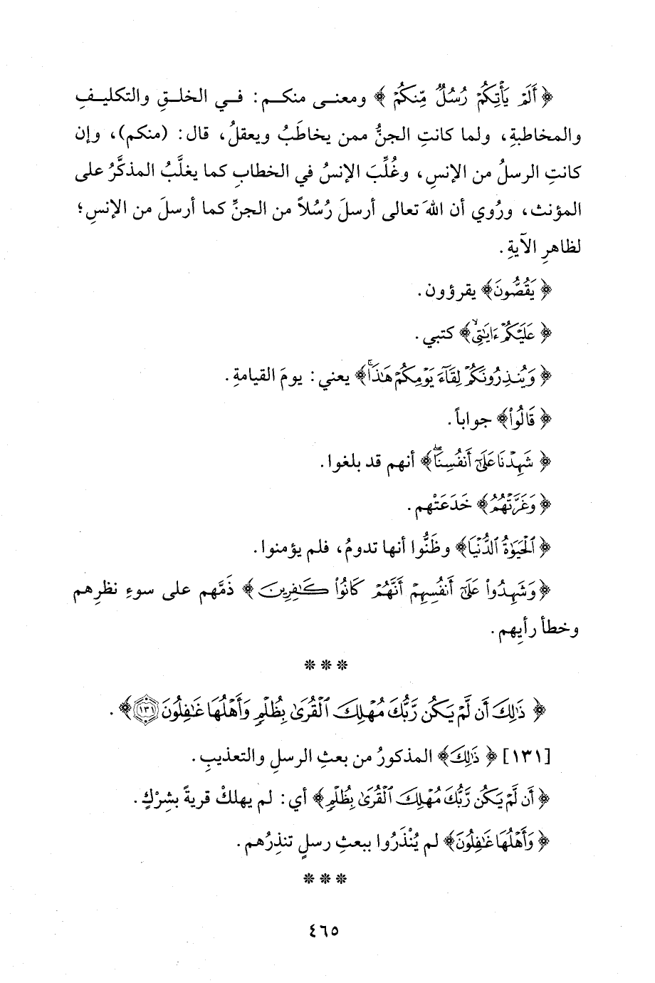 {ذَلِكَ أَنْ لَمْ يَكُنْ رَبُّكَ مُهْلِكَ الْقُرَى بِظُلْمٍ وَأَهْلُهَا غَافِلُونَ (131)}.