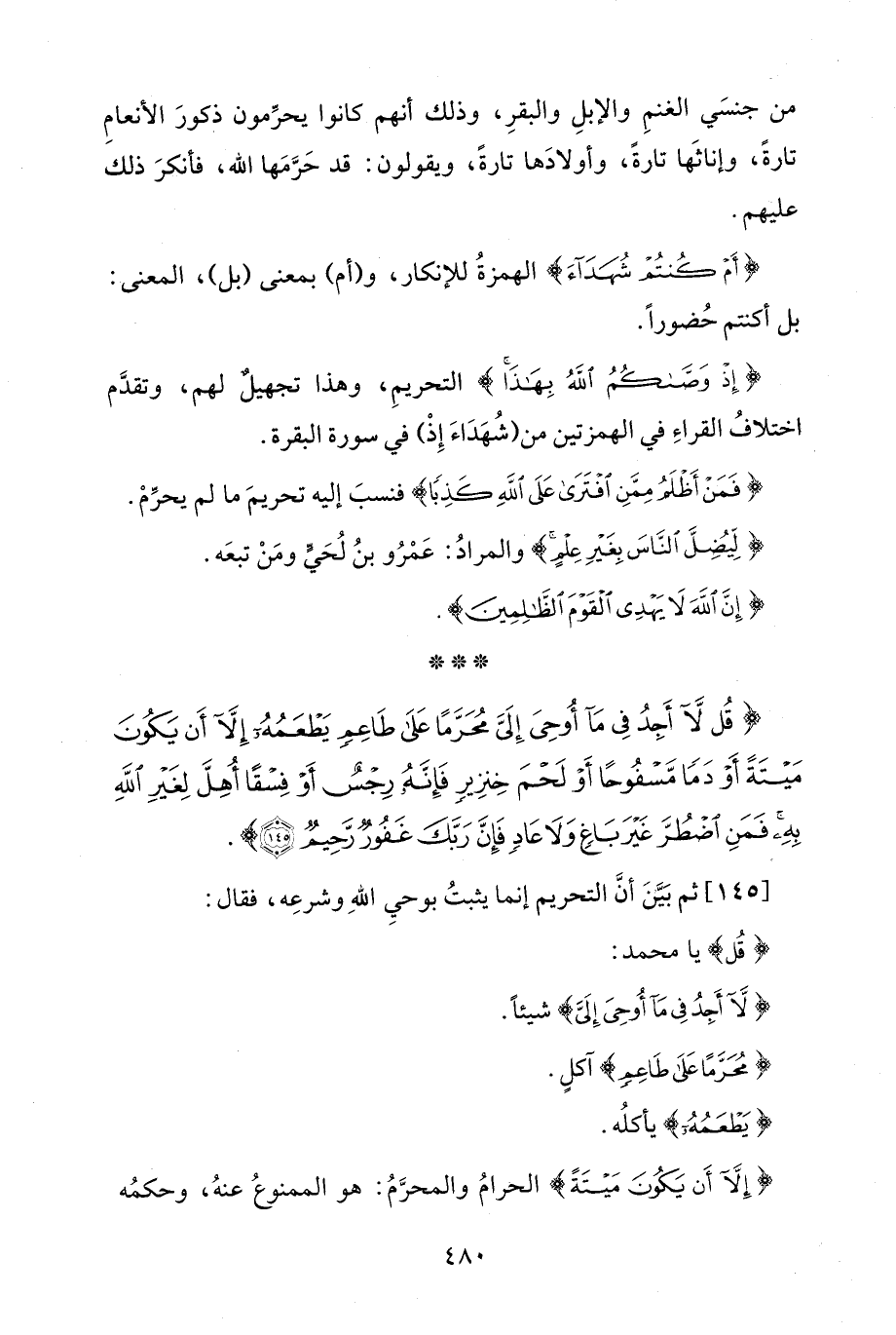 [145] ثم بَيَّنَ أنَّ التحريم إنما يثبتُ بوحيِ اللهِ وشرعِه، فقال: