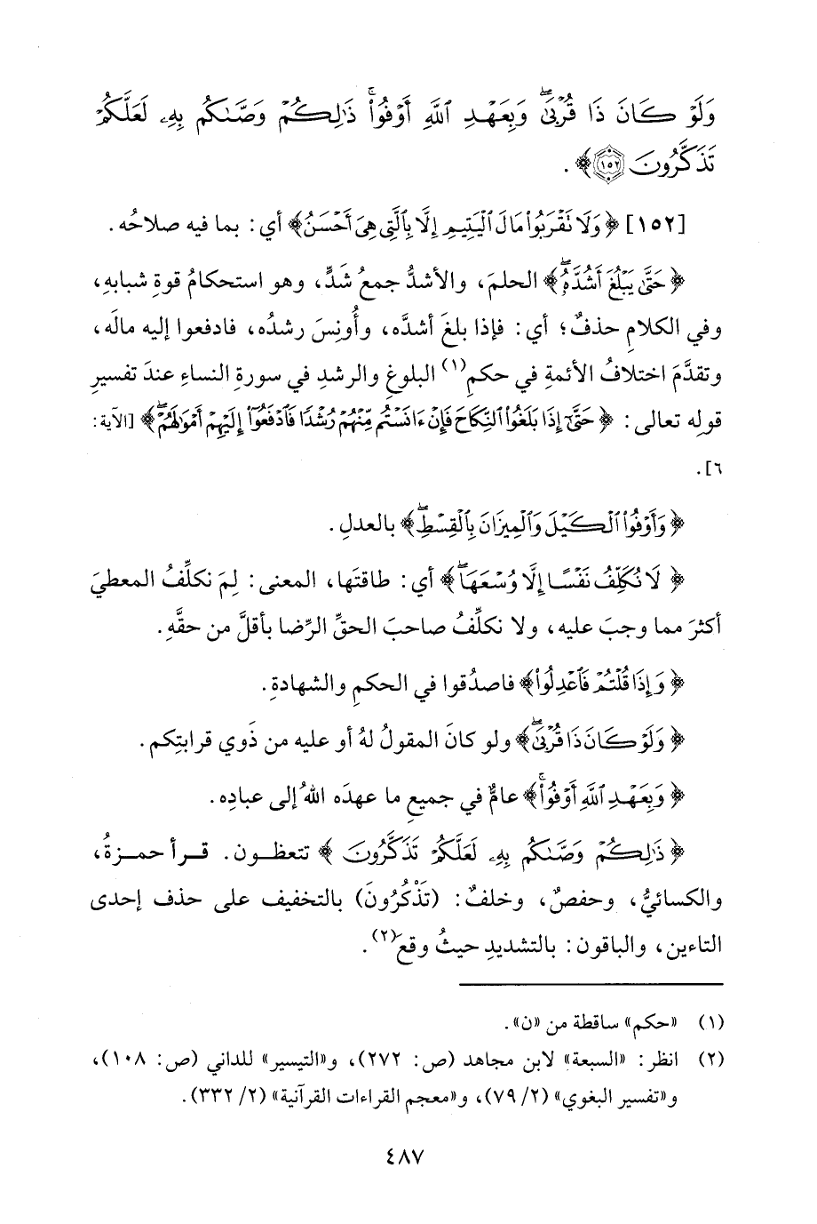 وَلَوْ كَانَ ذَا قُرْبَى وَبِعَهْدِ اللَّهِ أَوْفُوا ذَلِكُمْ وَصَّاكُمْ بِهِ لَعَلَّكُمْ تَذَكَّرُونَ (152)}.