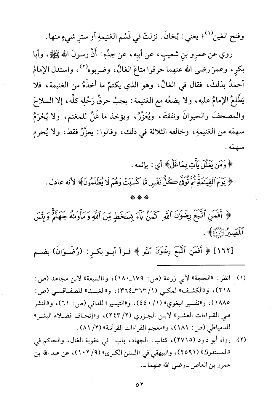 (¬2) رواه أبو داود (2715)، كتاب: الجهاد، باب: في عقوبة الغال، والحاكم في "المستدرك" (2591)، والبيهقي في "السنن الكبرى" (9/ 102)، عن عبد الله بن عمرو بن العاص -رضي الله عنهما-.