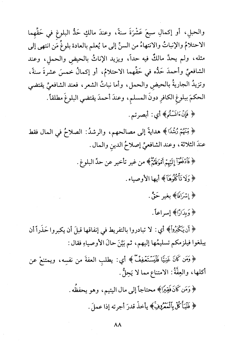 {مِنْهُمْ رُشْدًا} هدايةً إلى مصالحهم، والرشدُ: الصلاحُ في المال فقط عندَ الثلاثة، وعند الشافعيِّ إصلاحُ الدينِ والمال.