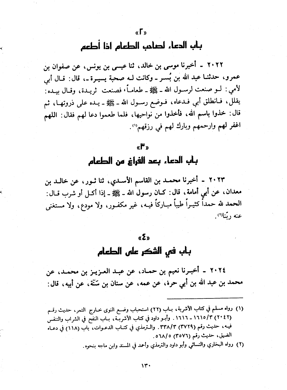 ( 3 باب الدعاء بعد الفراغ من الطعام )