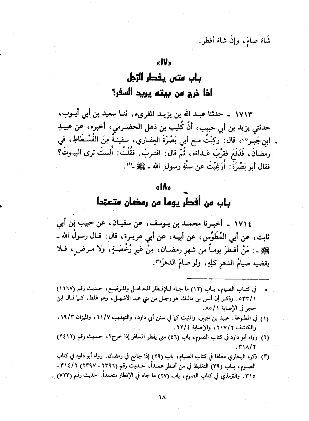 ( 18 باب من أفطر يوما من رمضان متعمدا )