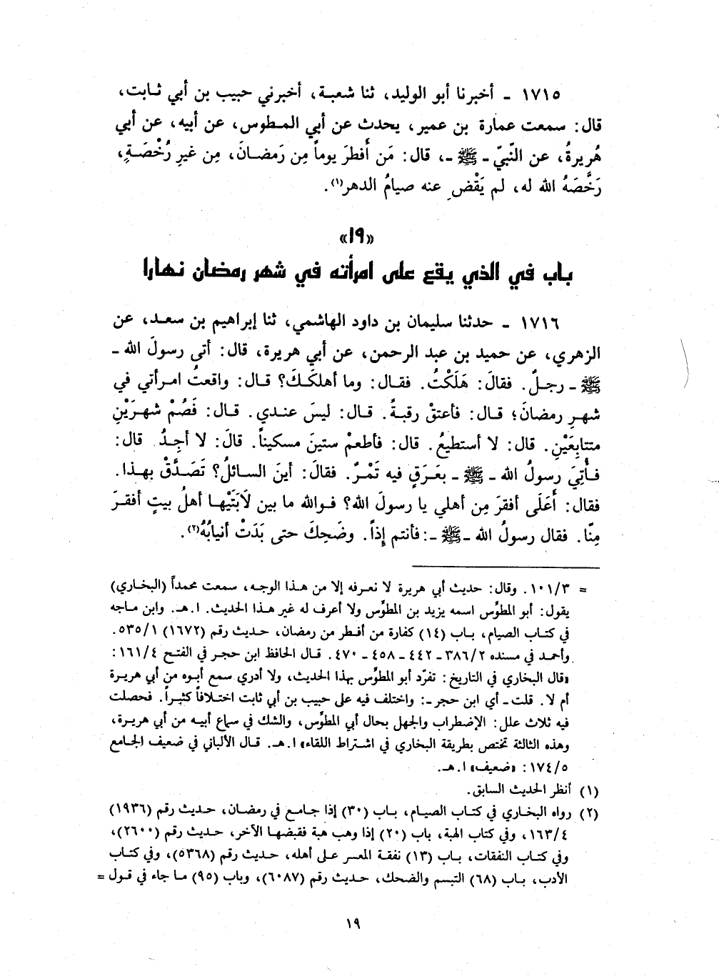 ( 19 باب في الذي يقع على امرأته في شهر رمضان نهارا )