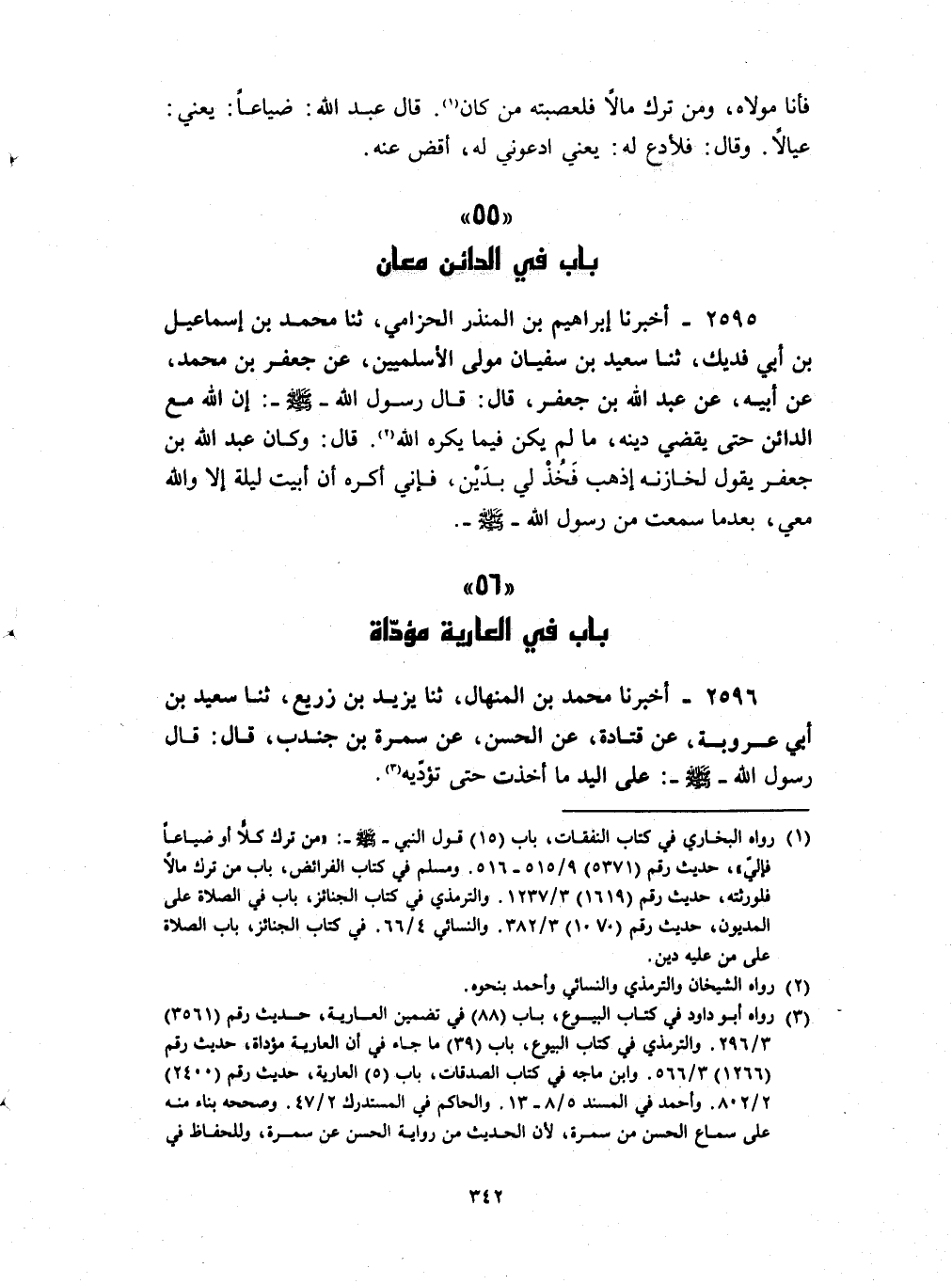 2596 - أخبرنا محمد بن المنهال ثنا يزيد بن زريع ثنا سعيد بن أبي عروبة عن قتادة عن الحسن عن سمرة بن جندب قال قال رسول الله صلى الله عليه و سلم : على اليد ما أخذت حتى تؤديه