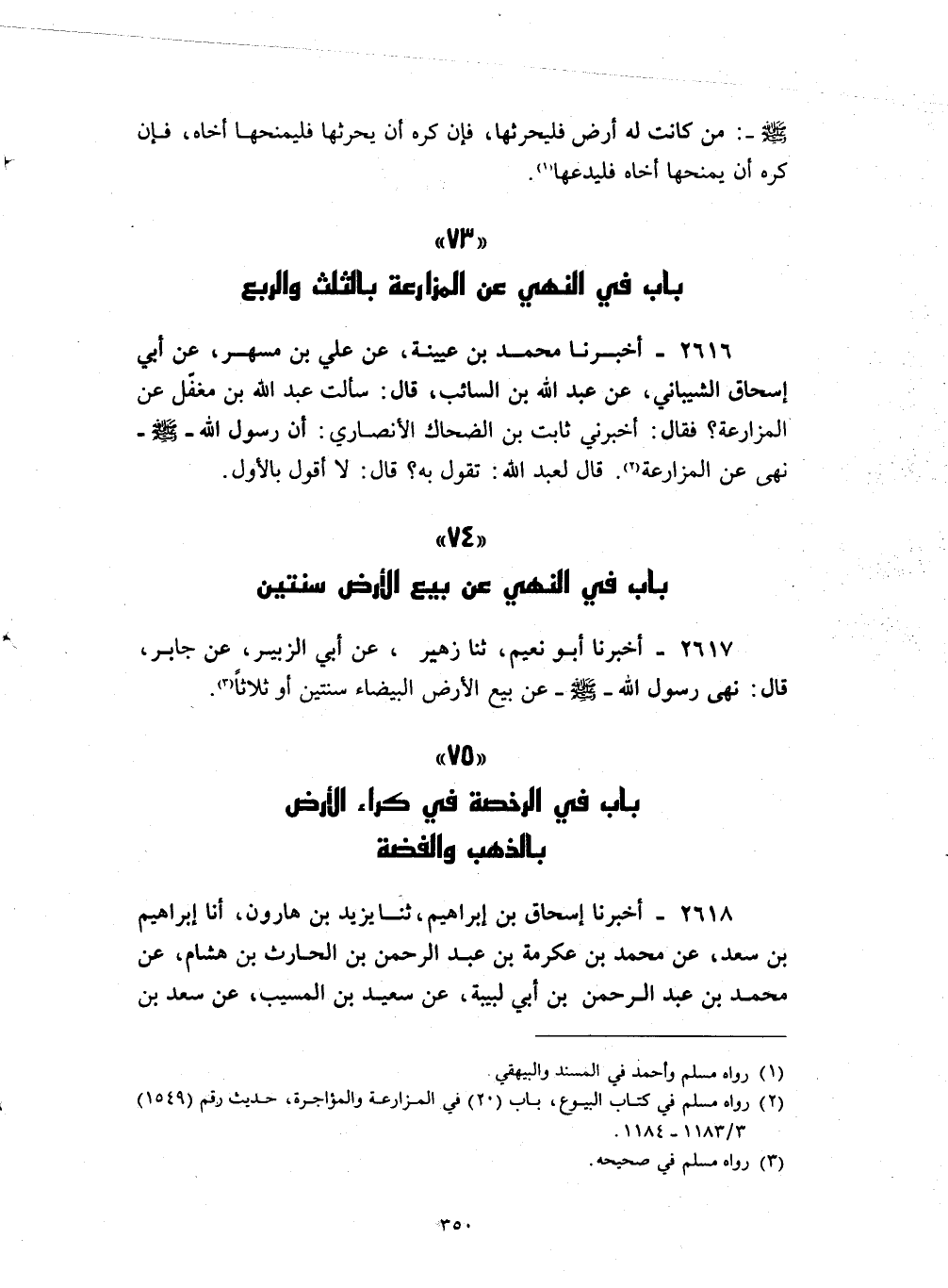( 73 باب في النهي عن المزارعة بالثلث والربع )
