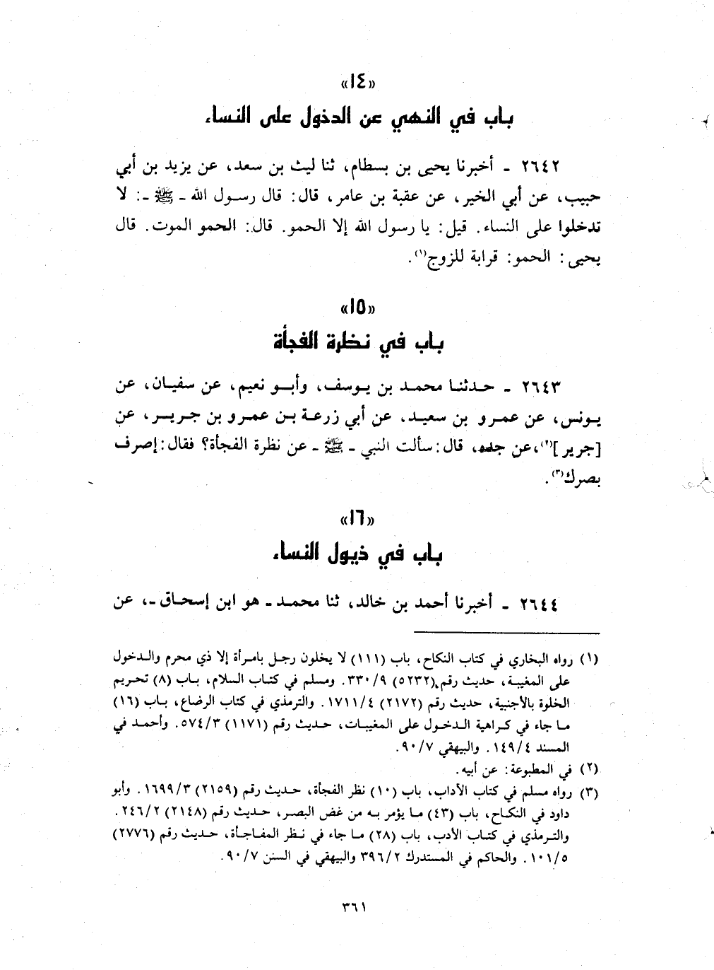 2642 - أخبرنا يحيى بن بسطام ثنا ليث بن سعد عن يزيد بن أبي حبيب عن أبي الخير عن عقبة بن عامر قال قال رسول الله صلى الله عليه و سلم : لا تدخلوا على النساء قيل يا رسول الله الا الحمو قال الحمو الموت قال يحيى الحمو قرابة للزوج