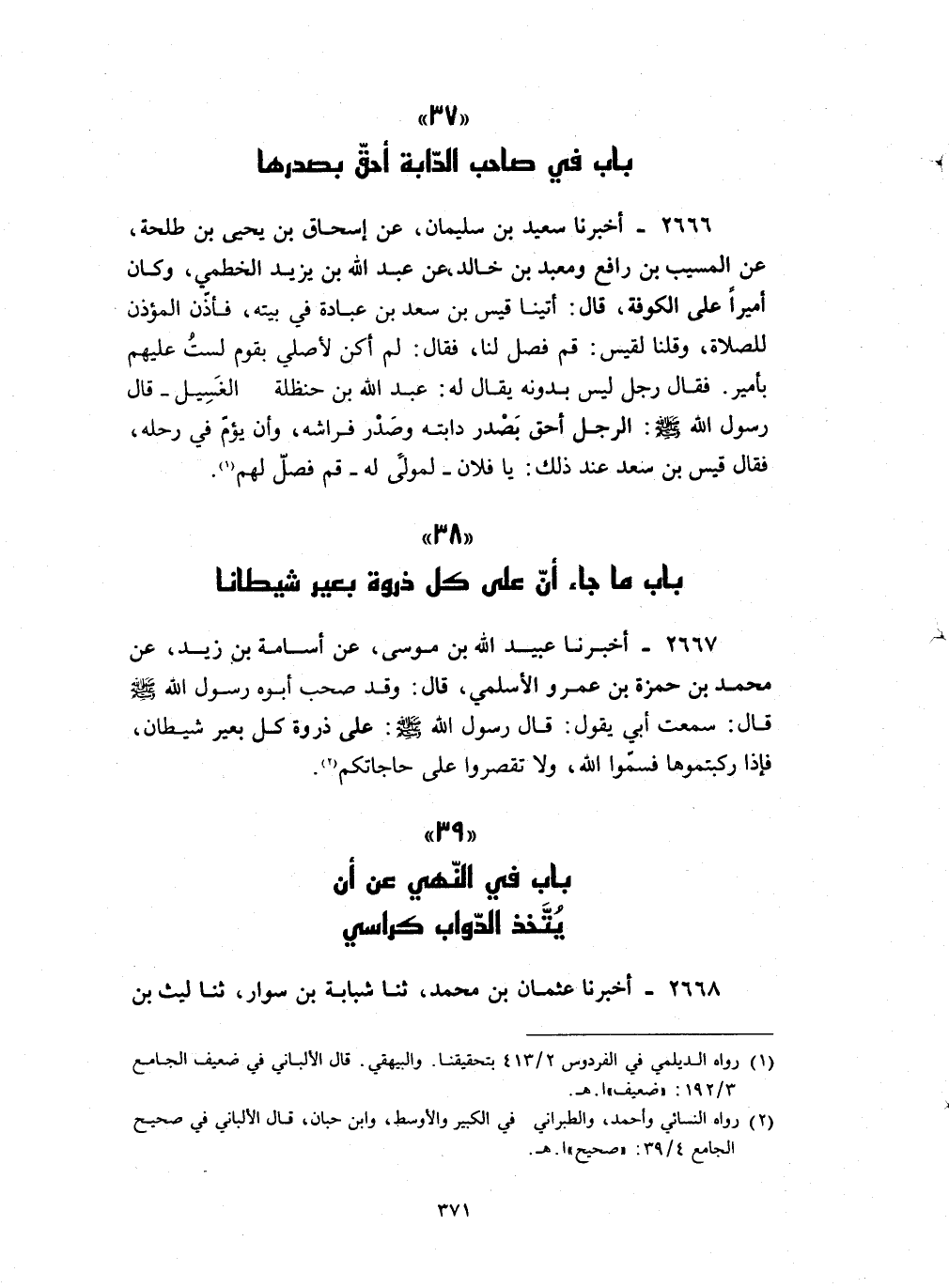 ( 39 باب في النهي عن ان يتخذ الدواب كراسي )