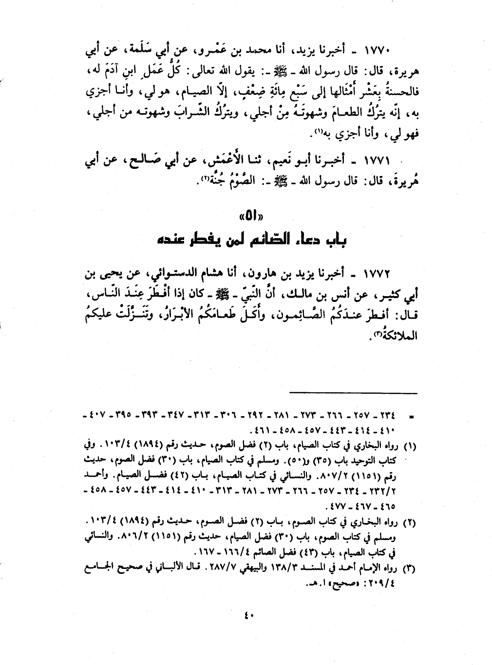1771 - أخبرنا أبو نعيم ثنا الأعمش عن أبي صالح عن أبي هريرة قال قال رسول الله صلى الله عليه و سلم : الصوم جنة