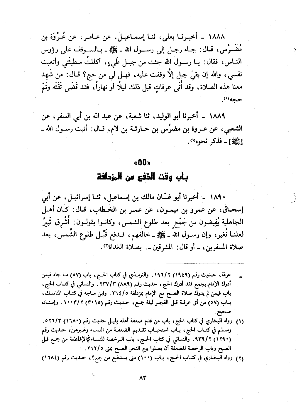 1889 - أخبرنا أبو الوليد ثنا شعبة عن عبد الله بن أبي السفر عن الشعبي عن عروة بن مضرس بن حارثة بن لام قال : أتيت رسول الله فذكر نحوه